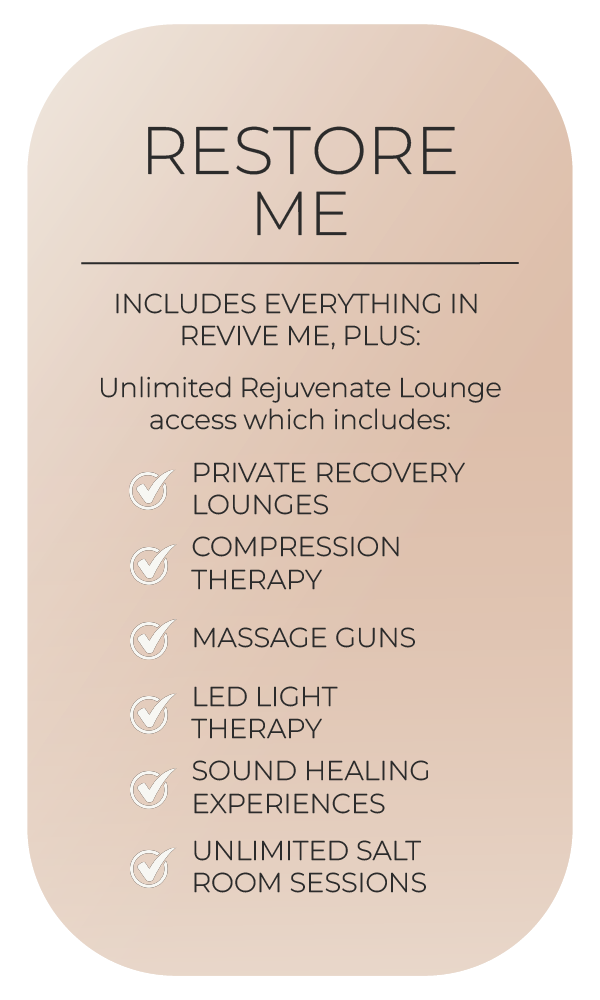 A dedicated, private recovery space designed for deep relaxation and targeted rejuvenation. Enjoy access to: